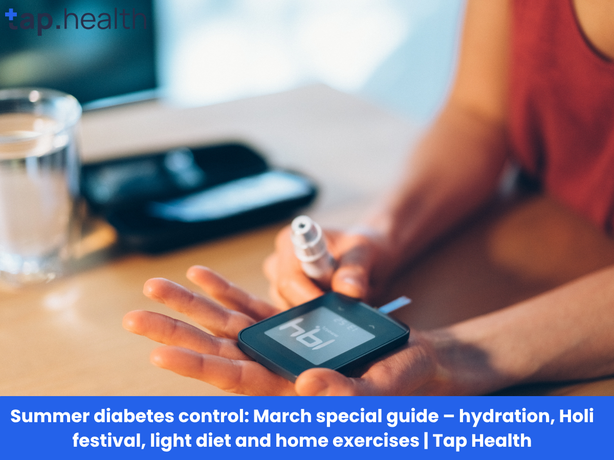 गर्मी में डायबिटीज कंट्रोल: मार्च स्पेशल गाइड – हाइड्रेशन, होली फेस्टिवल, लाइट डाइट और घरेलू व्यायाम | Tap Health