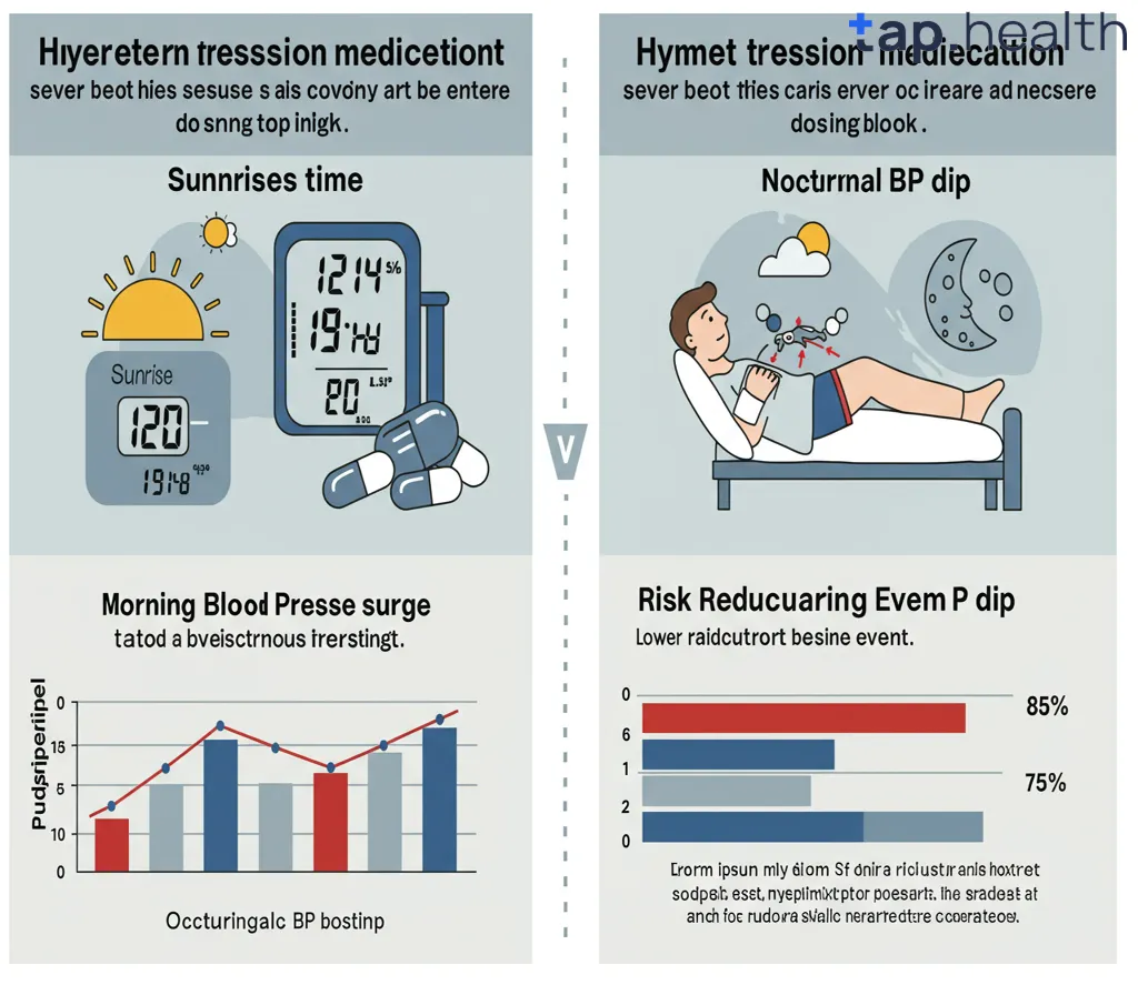 - लंबे समय तक प्रभाव: कुछ दवाएं, जैसे एसीई इनहिबिटर्स या एआरबी, रात में लेने पर 24 घंटे तक ब्लड प्रेशर को नियंत्रित रखती हैं, जिससे सुबह का सर्ज कम होता है।