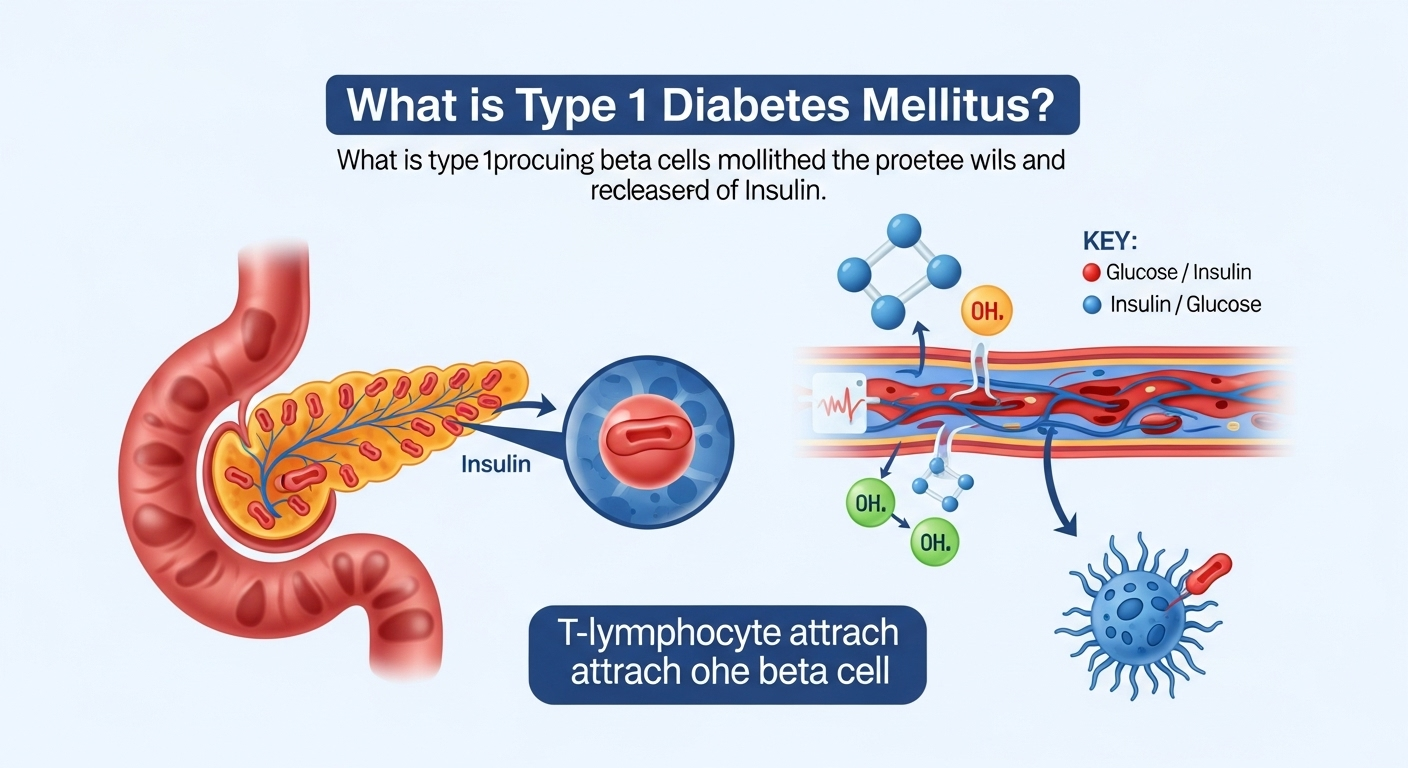 Type 1 diabetes mellitus (often just called Type 1 diabetes) is a chronic condition that occurs when the body’s immune system mistakenly attacks and destroys the insulin-producing cells in the pancreas. This results in little to no insulin production, which is essential for regulating blood sugar (glucose) levels. As a result, people with Type 1 diabetes must carefully manage their blood sugar levels throughout their lives.